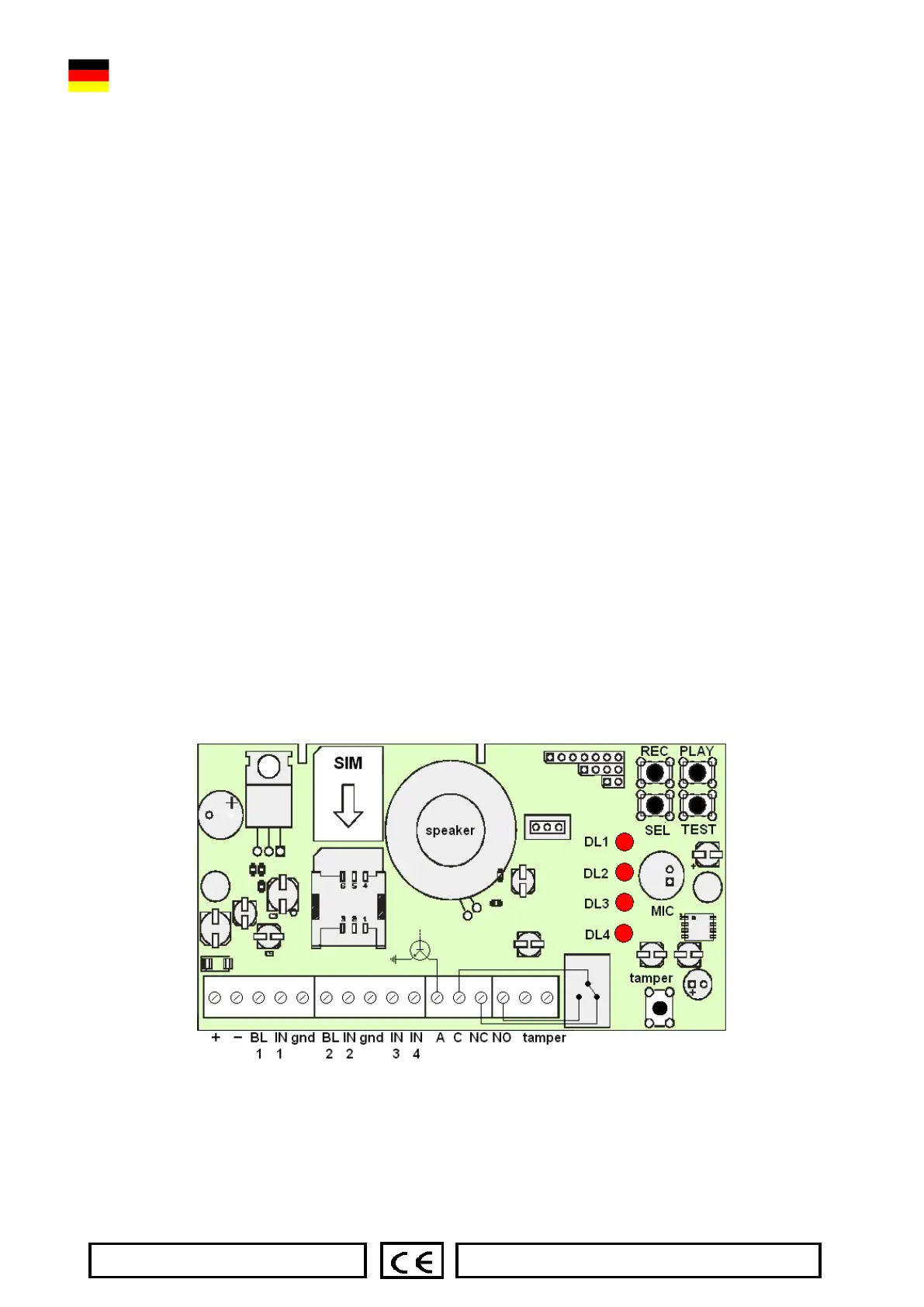 Nr. 4 normalerweise geschlossene Eingänge auf GND (Erde) zur Steuerung der Anrufe: Durch Öffnen Sendung von Nachrichten.