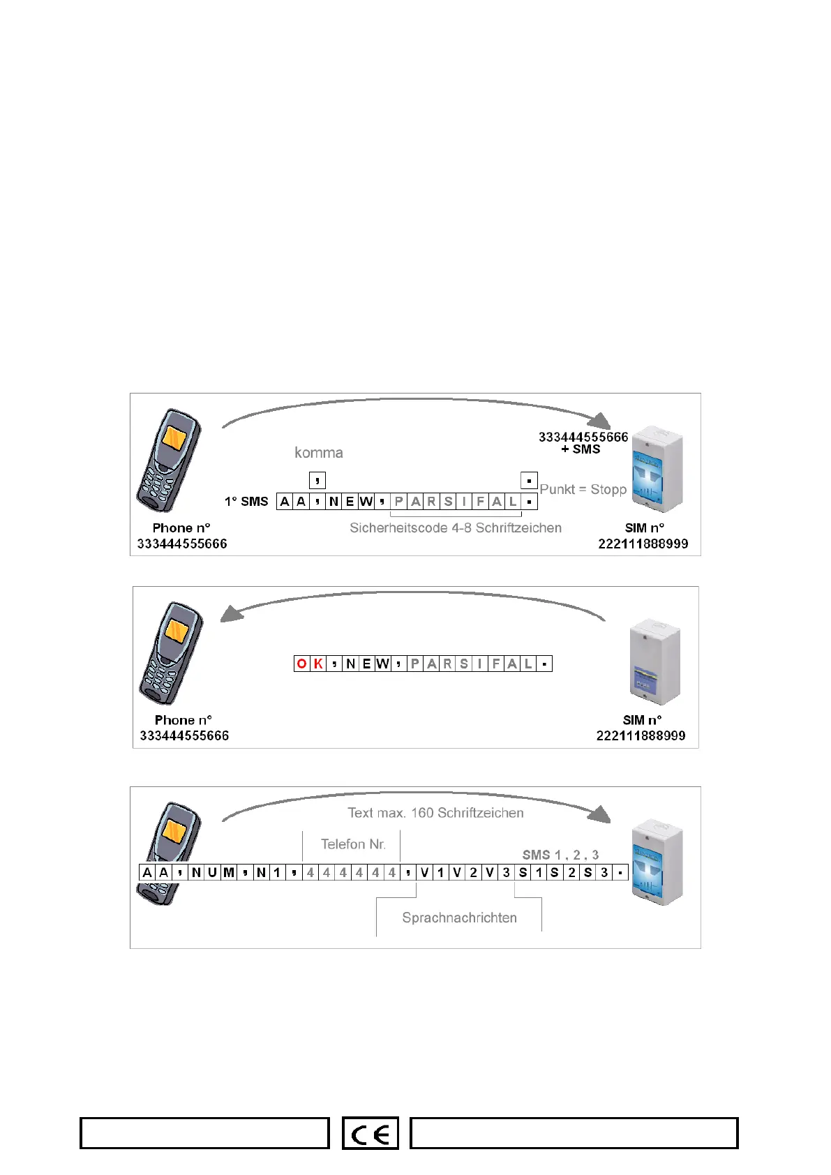 3.3 Programmierung “Passwort”, Nummern, SMS-Nachrichten und Einstellungen