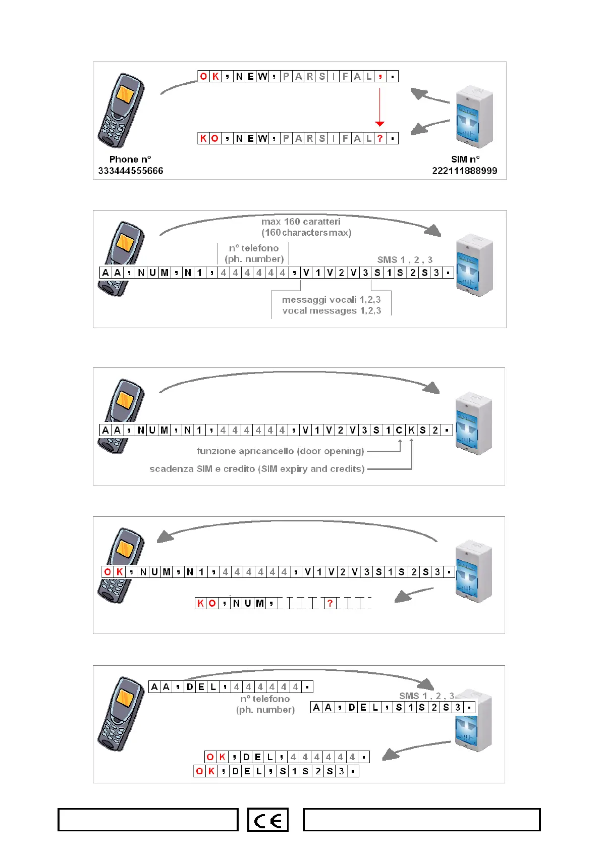 3.3.5 SMS di conferma (OK): dopo ogni invio attendere SMS di conferma. La risposta KO indica gli errori, evidenziati da “?”