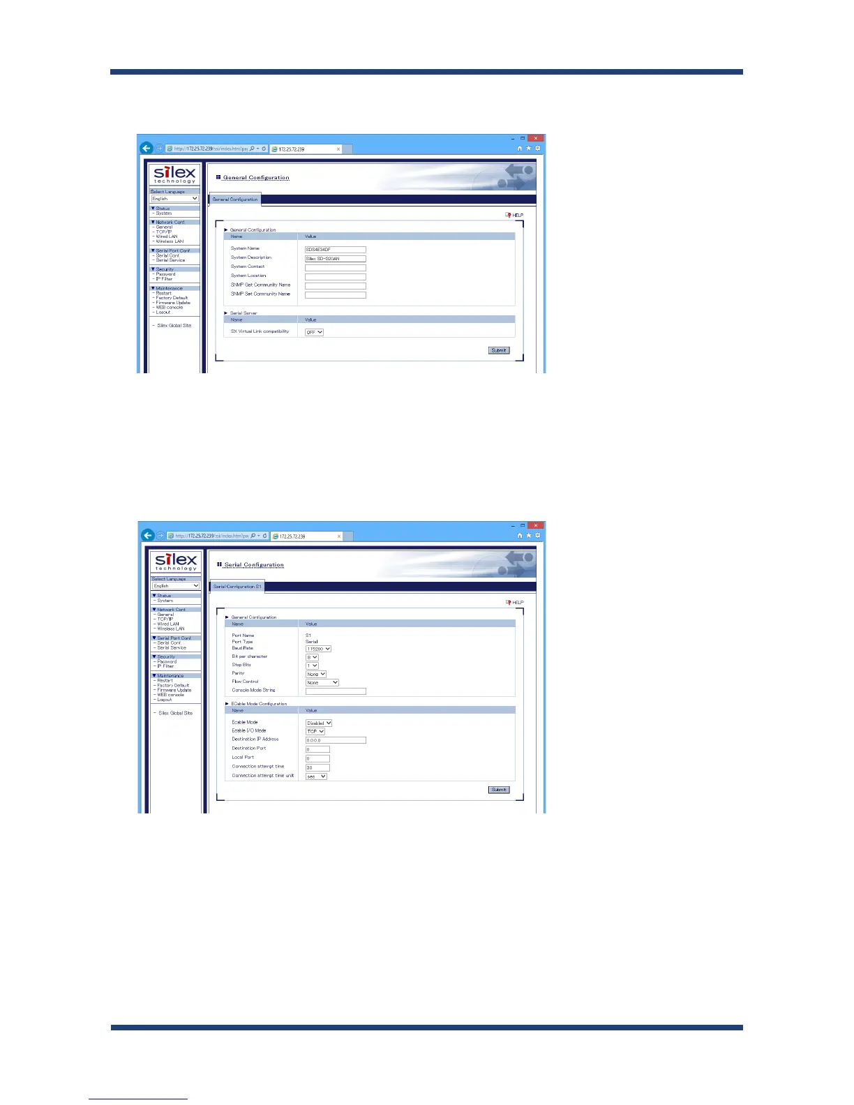 In the left pane of the Web page, click Serial Conf. and congure the settings at General