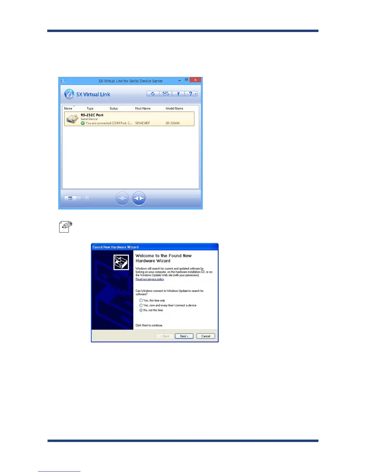 * If Found New Hardware Wizard is displayed, install software for the device according to the followings: