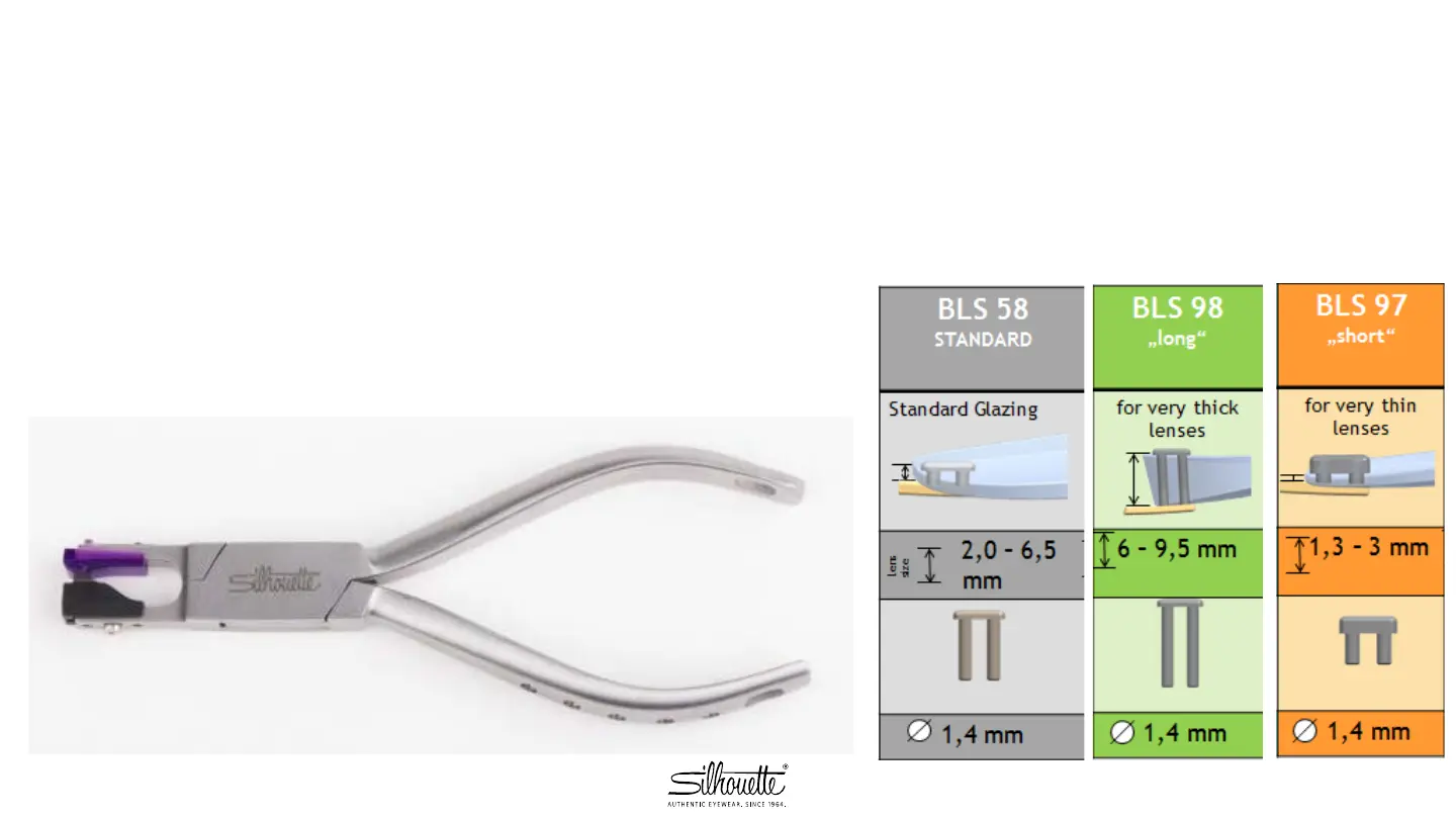 Rx lens Base 8.0, Silhouette plier with purple tip and BLS 58/98/97