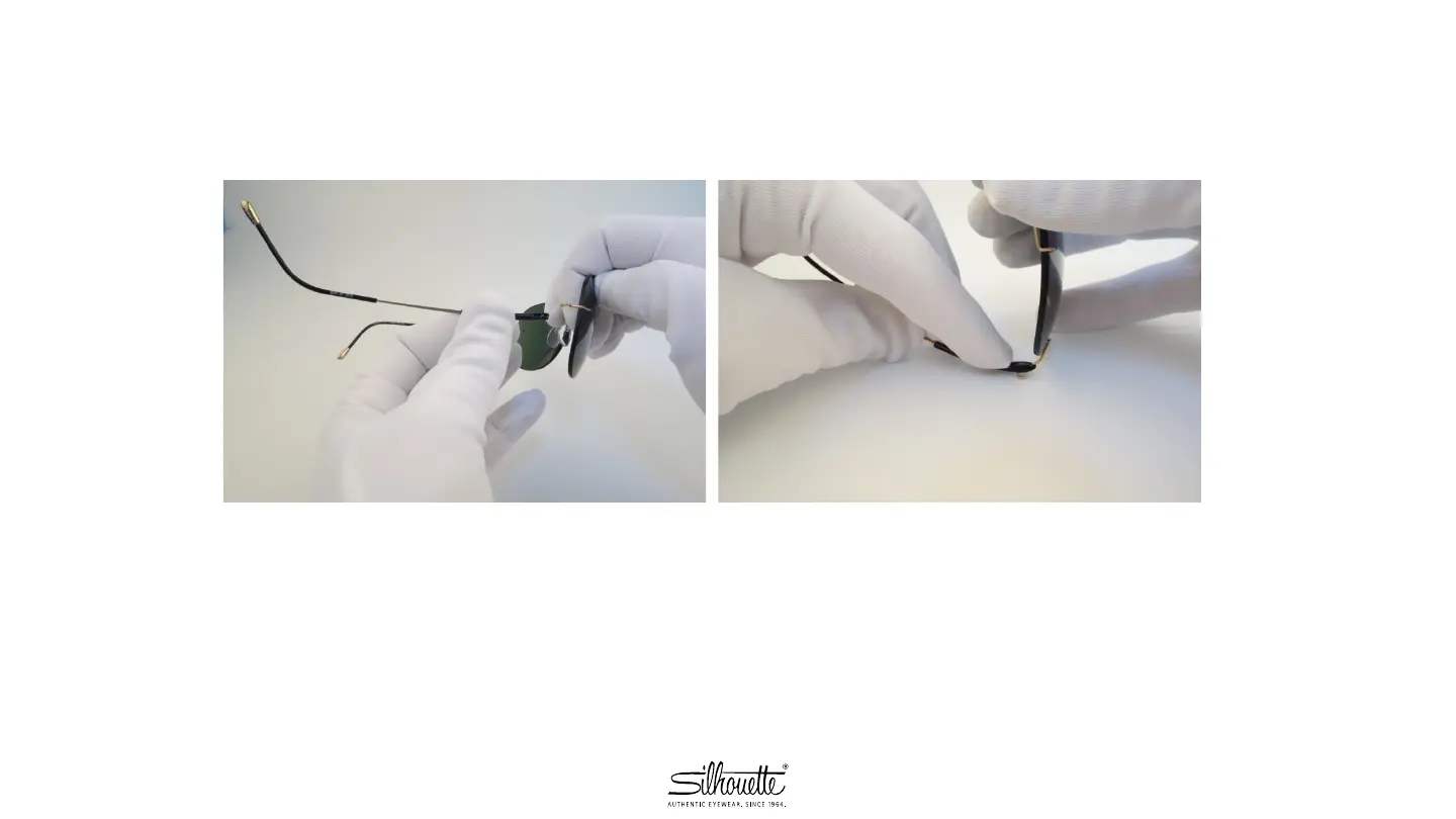 2. Insert temple into hook and turn it to