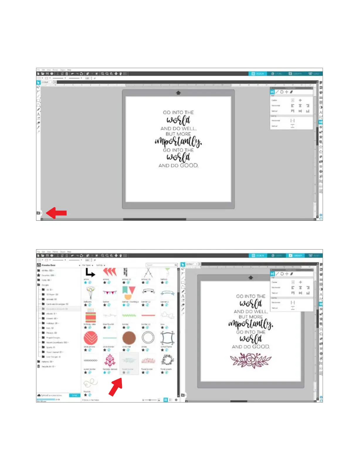 To view your designs space and your Silhouette Library at the same time, you can use the Library Split Screen feature. To