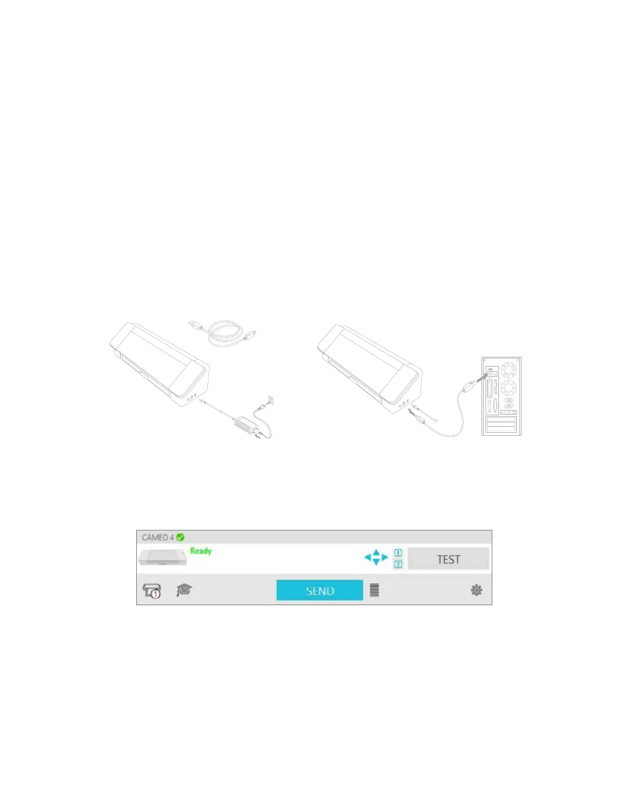 cable into the Cameo machine. Plug the power cord into a wall outlet.