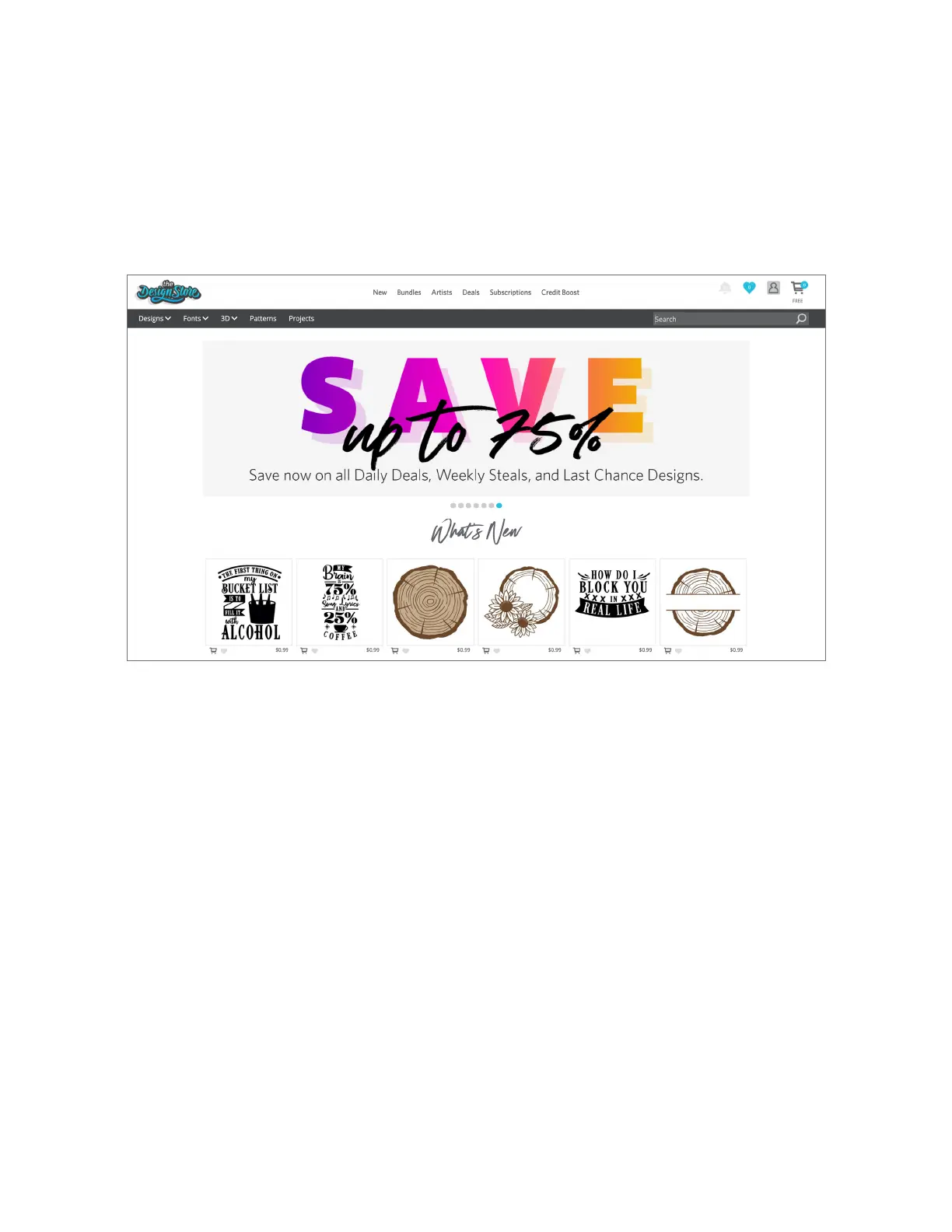 The free design of the week will be displayed on the Deals page. You can also view other deals, new designs, trending