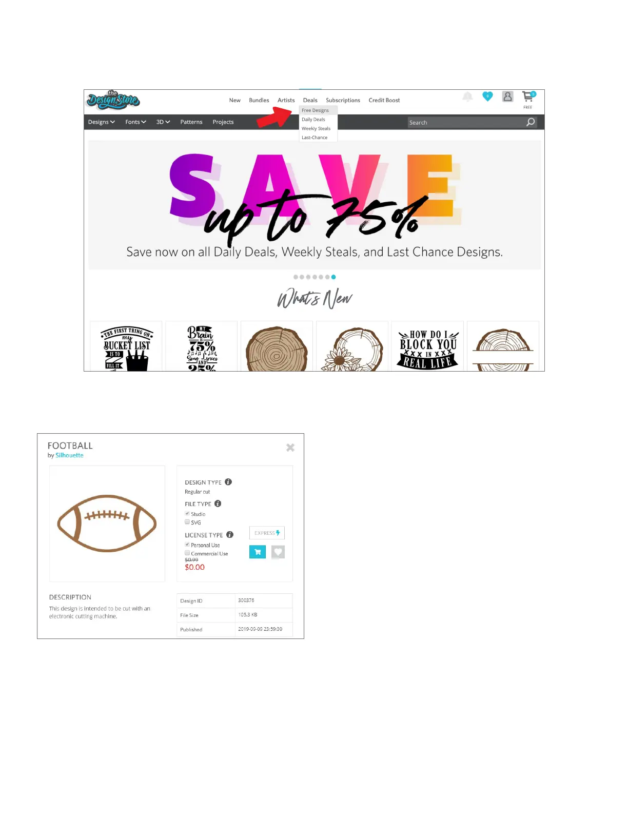 For now, try downloading a free design by clicking this week’s free design. You can find the Free Design on the Deals