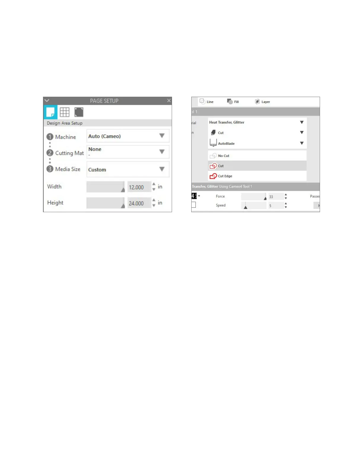1. Go to the Page Setup panel and change the Cutting Mat to “None.”