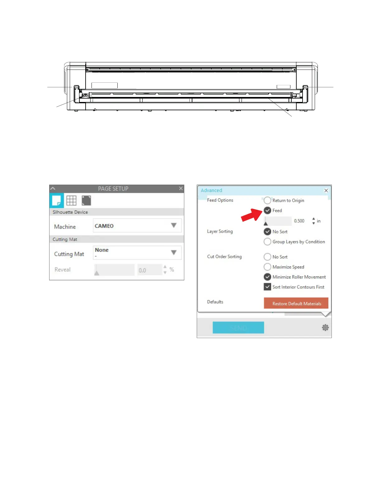 Make sure to set things up in Silhouette Studio® so that your cut will feed through the Cameo properly. First, set your