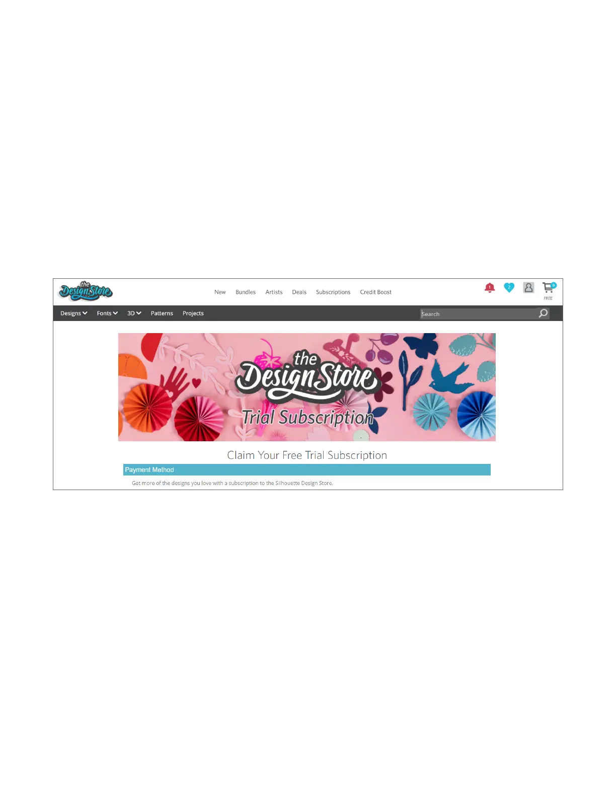 Note: If you already have an active Design Store subscription, a credit equivalent to the Trail Subscription amount will be