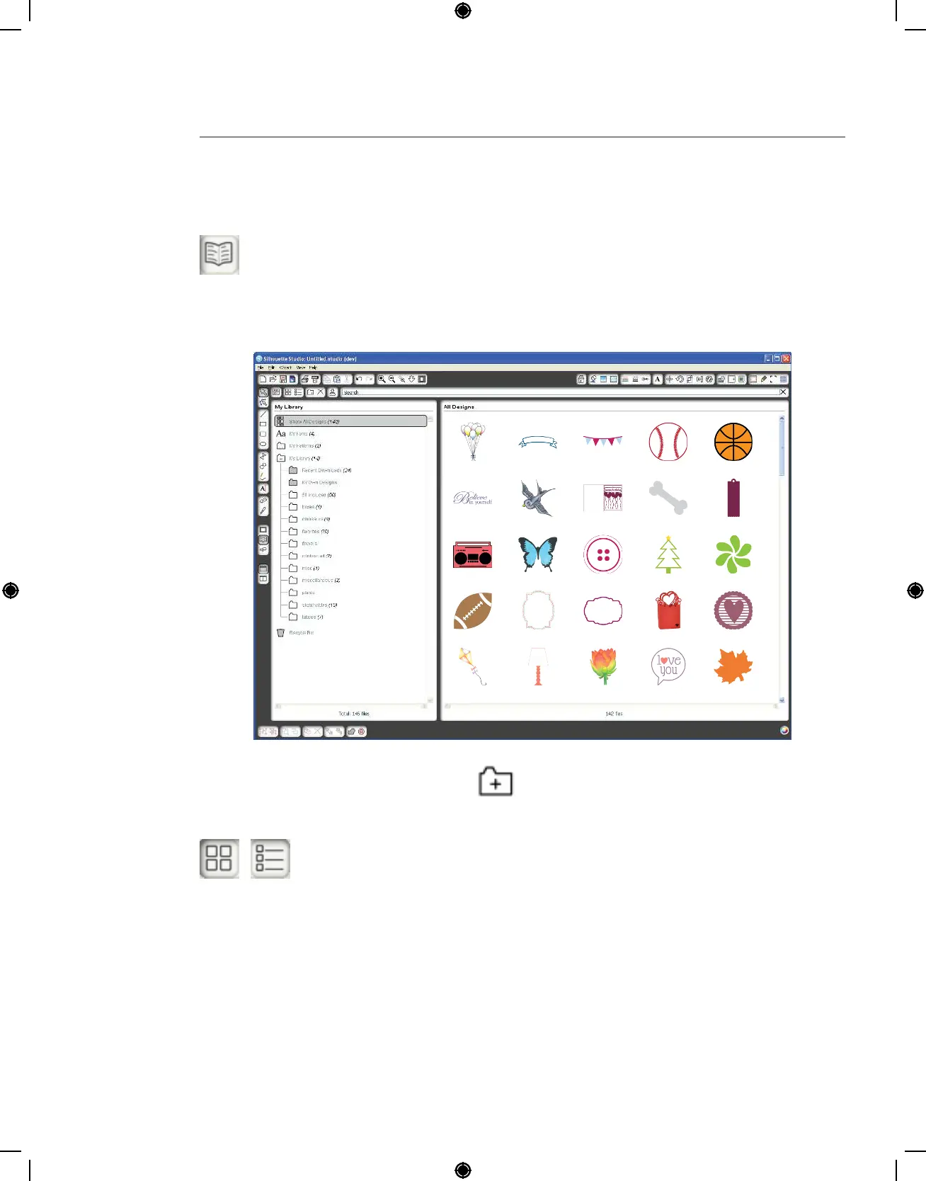 Click the My Library button to view the Silhouette designs you have on your computer.