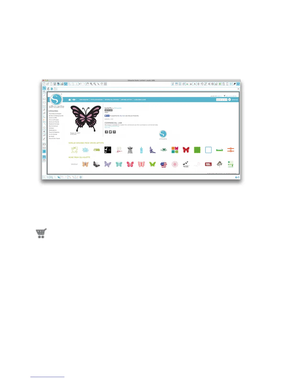 The Silhouette Design Store works like any other web page and can be navigated by clicking on