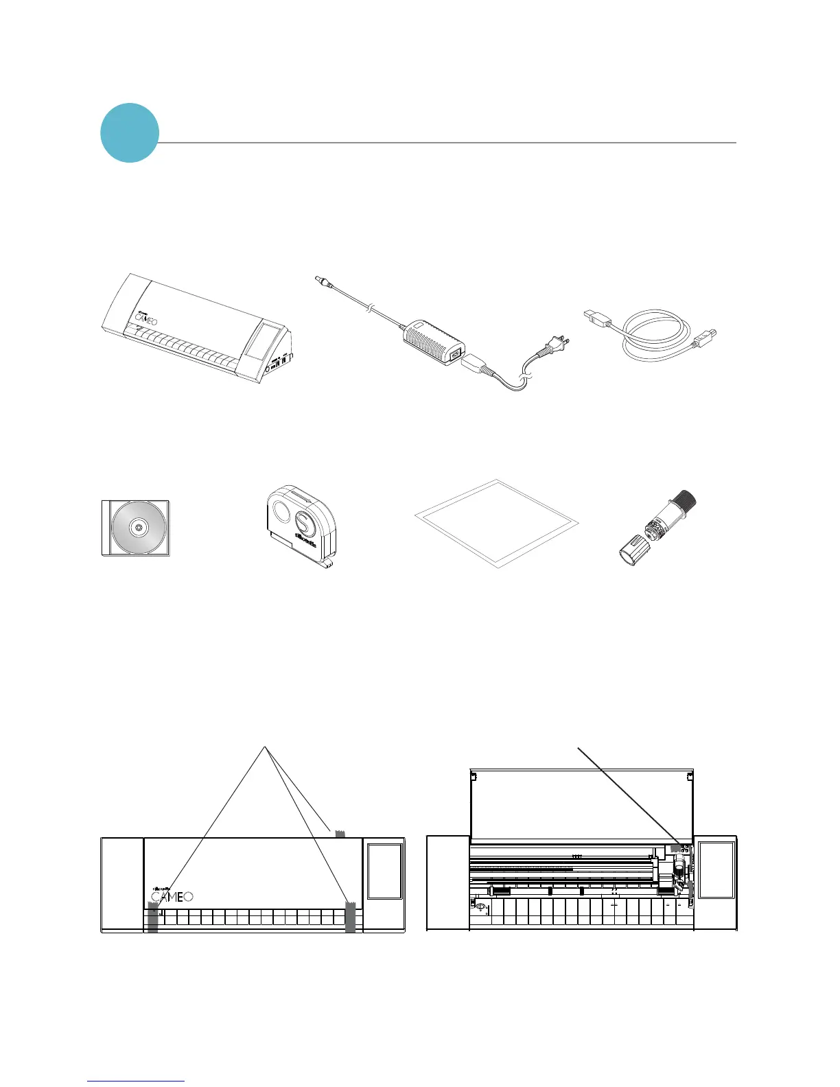 The Silhouette CAMEO® comes with the items shown in the following list. Check that all the