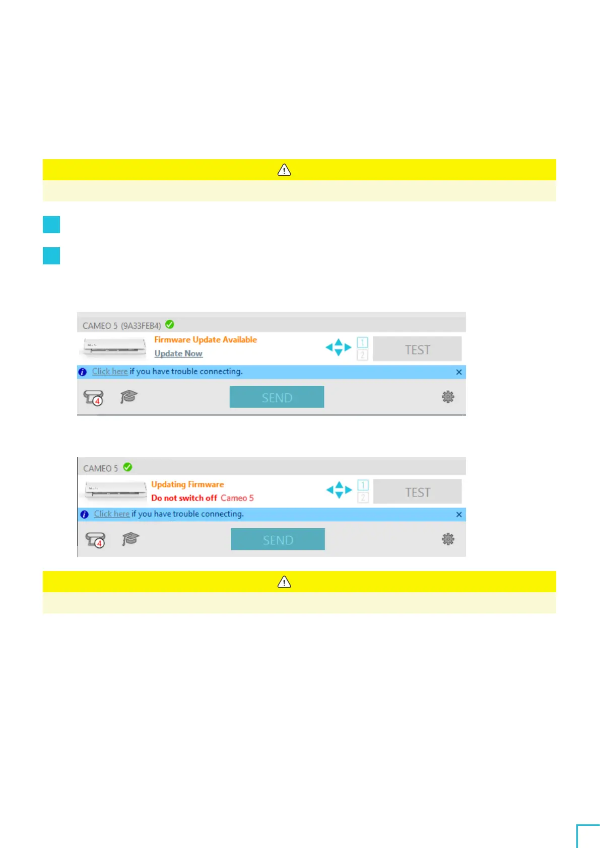 If a message for firmware update is displayed in the "SEND" panel of Silhouette Studio, follow the steps below to