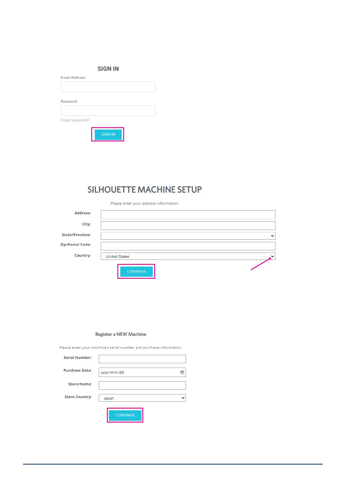 6. Select a "United States" from the country menu drop-down list, then enter your address information in your