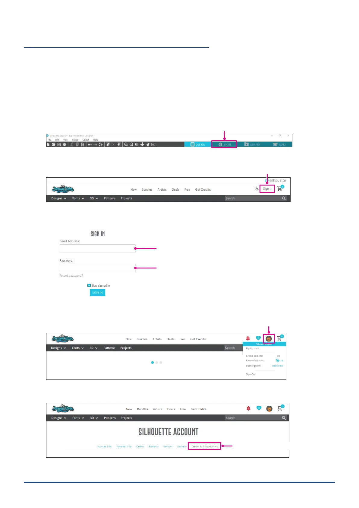 1. Go to the website (https://www.silhouettedesignstore.com) or click on the "STORE" tab in the Silhouette
