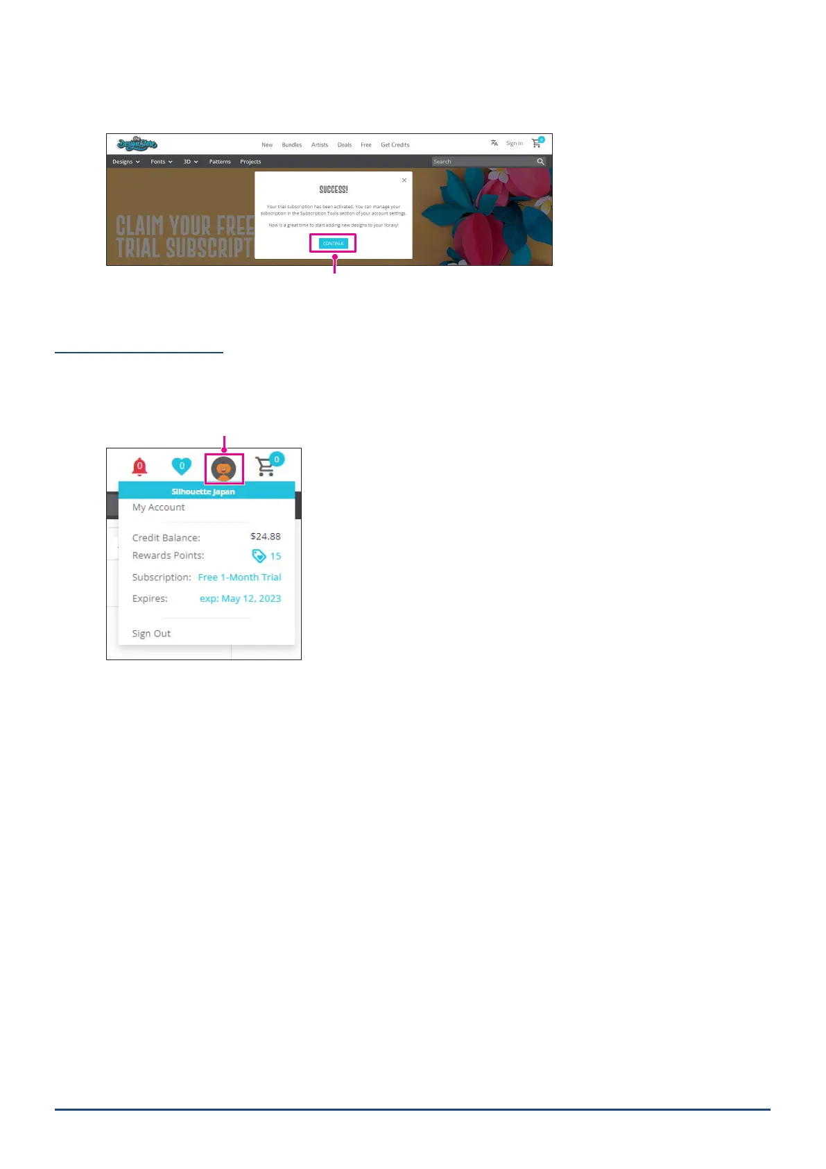 8. When the trial subscription has been applied, the "Success" screen will appear. Once the trial subscription