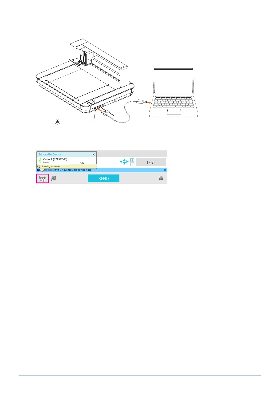Open the "SEND" tab of Silhouette Studio and click on the "Silhouette Devices" icon.
