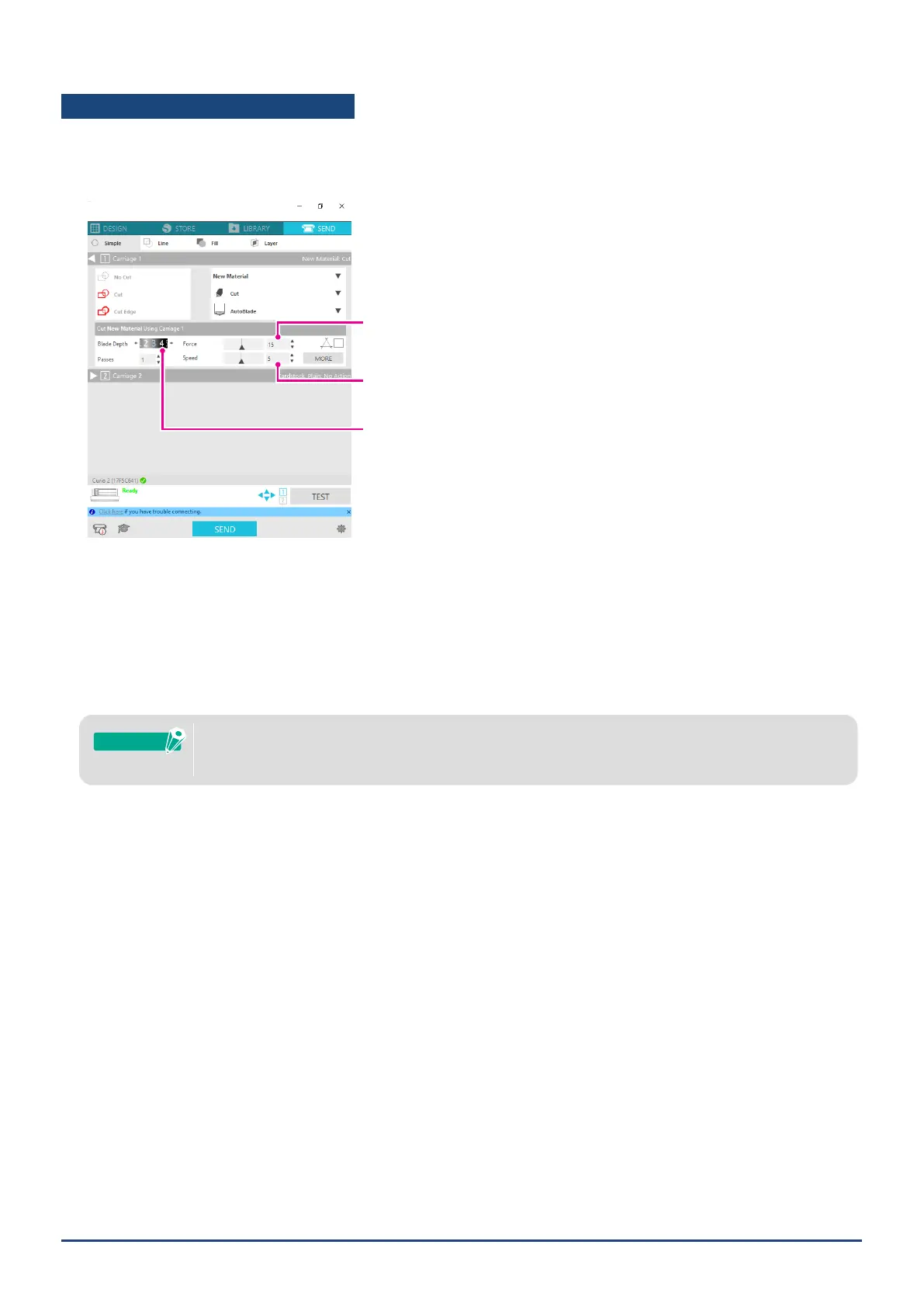 ● Set the Blade Depth, Force, and Speed to smaller values in Silhouette Studio and perform a test cut.