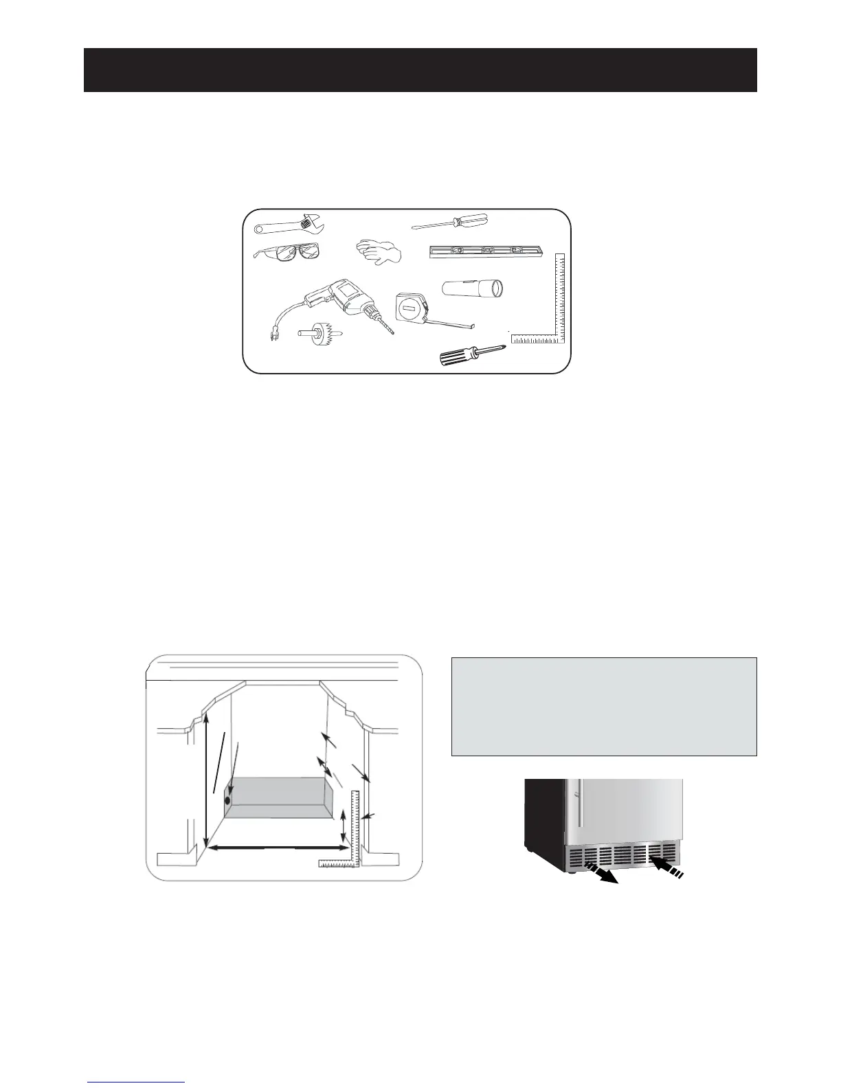 • L’ouverture de l’armoire doit être d’au moins 25’’ de profondeur par 15’’ de large. L’ouverture doit aussi avoir une