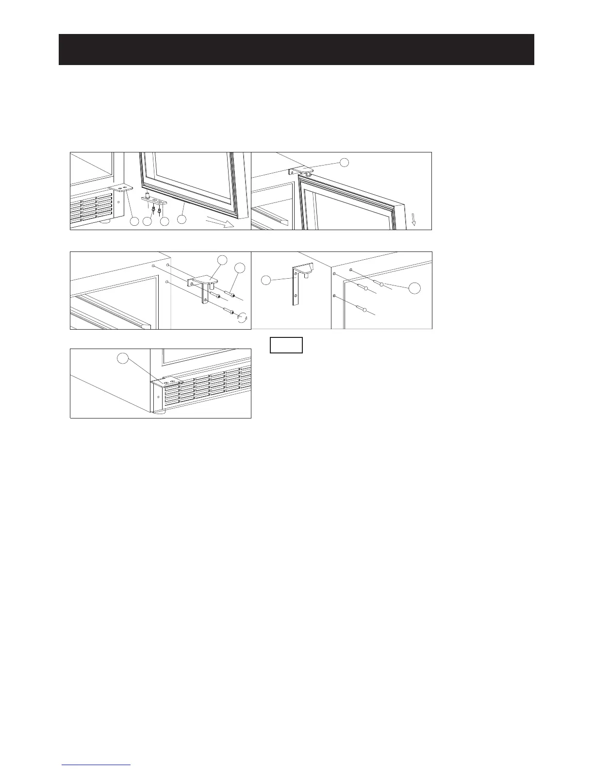 4. Aligner la charnière supérieure gauche (8) sur les trous et visser les 3 vis qui ont été retirées du côté droit.