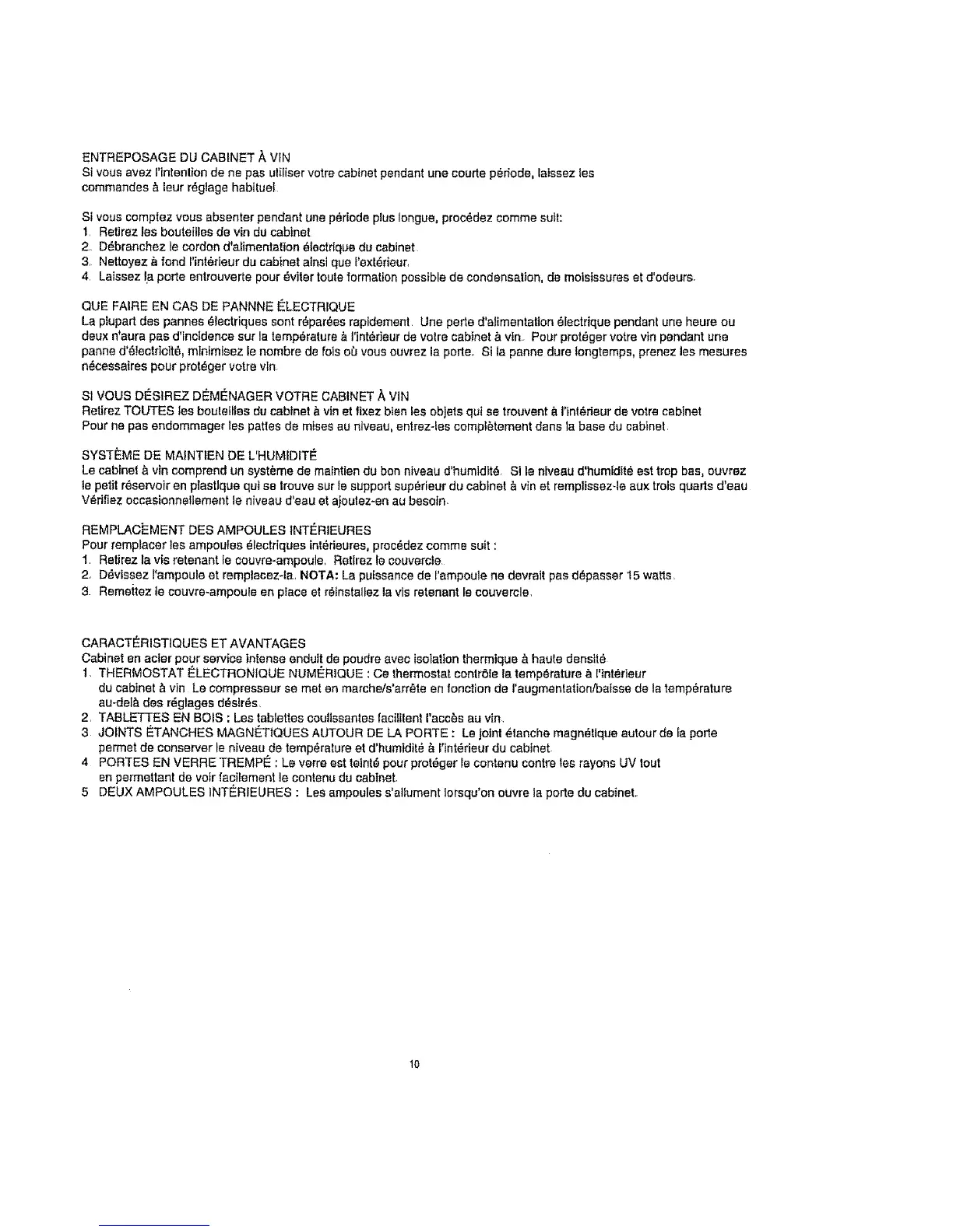 Le cabinet b, vin comprend un syst_me de mafntten du ben niveau d'humldIt& Si 18niveau d'humtdit_ est trap bes, ouvrez