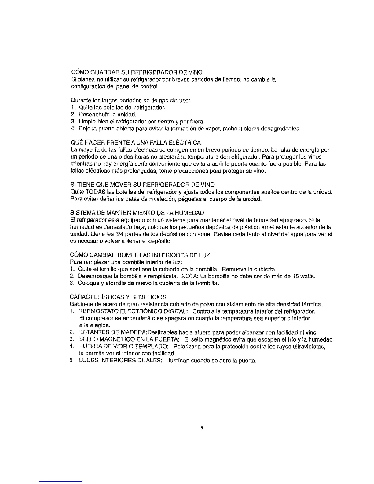 un periodo de una o dos horas no afectarA la temperatura del refrtgerador. Para proteger Ios vinos