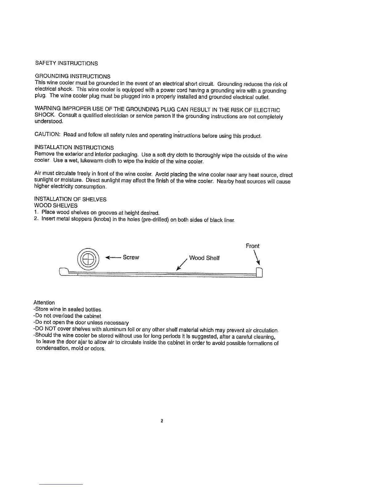 This wine cooler must be grounded in the event of an electrical short circuit. Grounding reduces the risk of