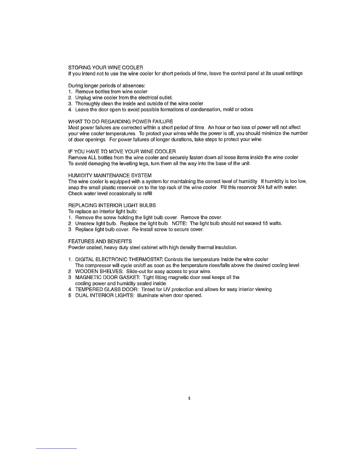 of door openings. For power failures of longer durations, take steps to protect your wine
