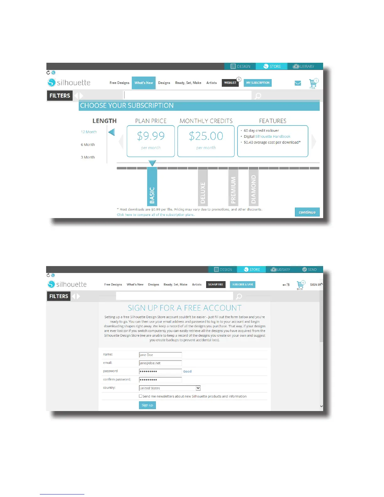 Several different account types exist. Once you’re more familiar with the Silhouette Design Store, you