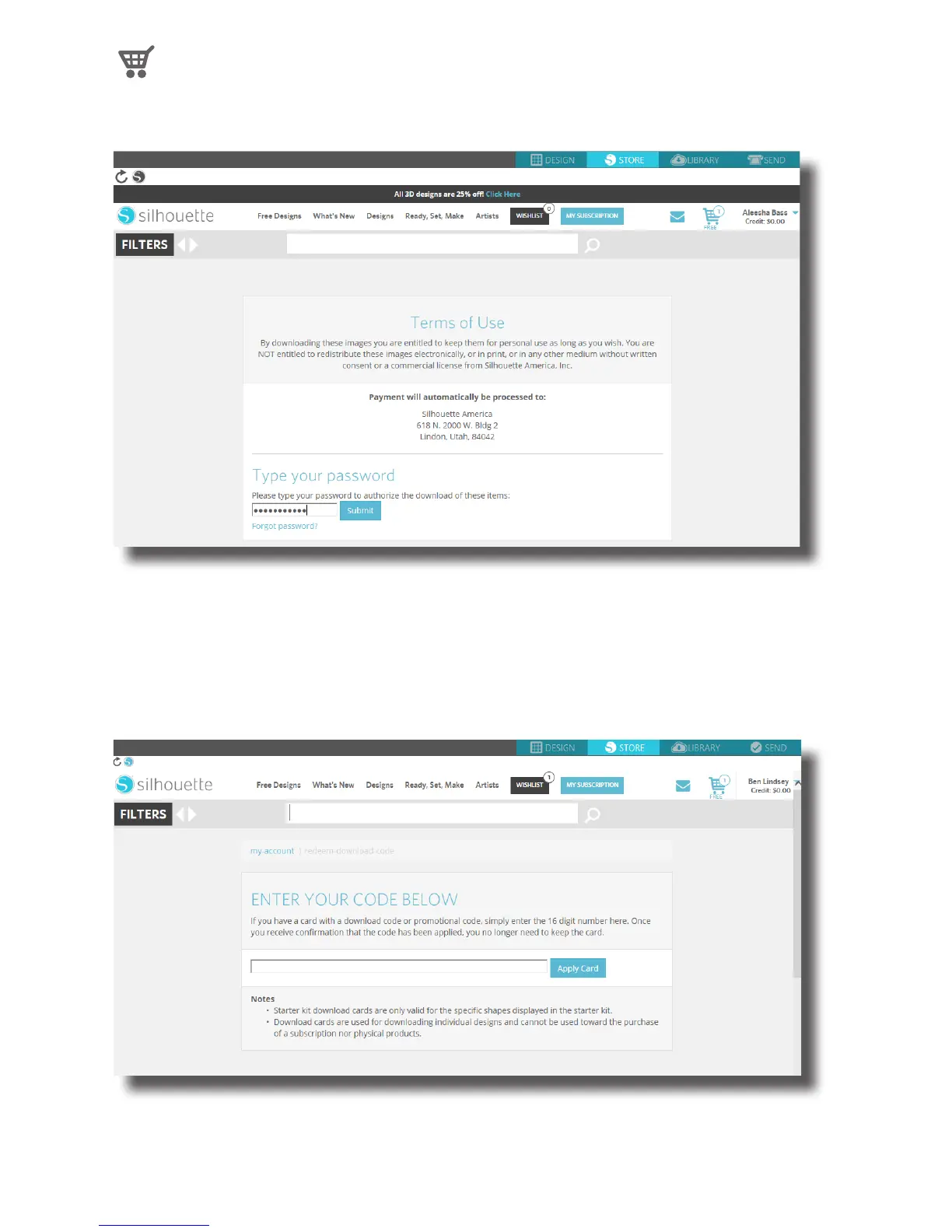 If your Silhouette came with a trial subscription card, you may use it to purchase designs from the