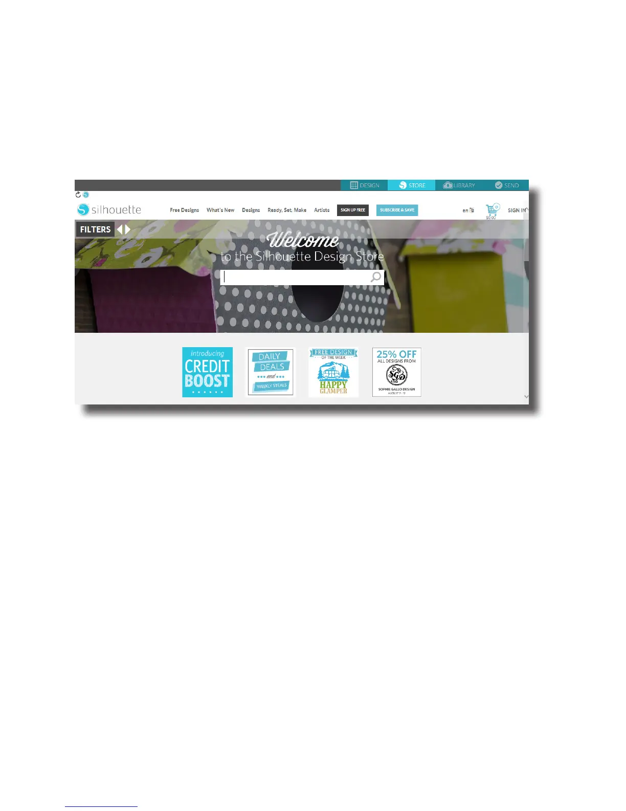To access the Silhouette Design Store, click the Store tab in the upper-right corner of the software.
