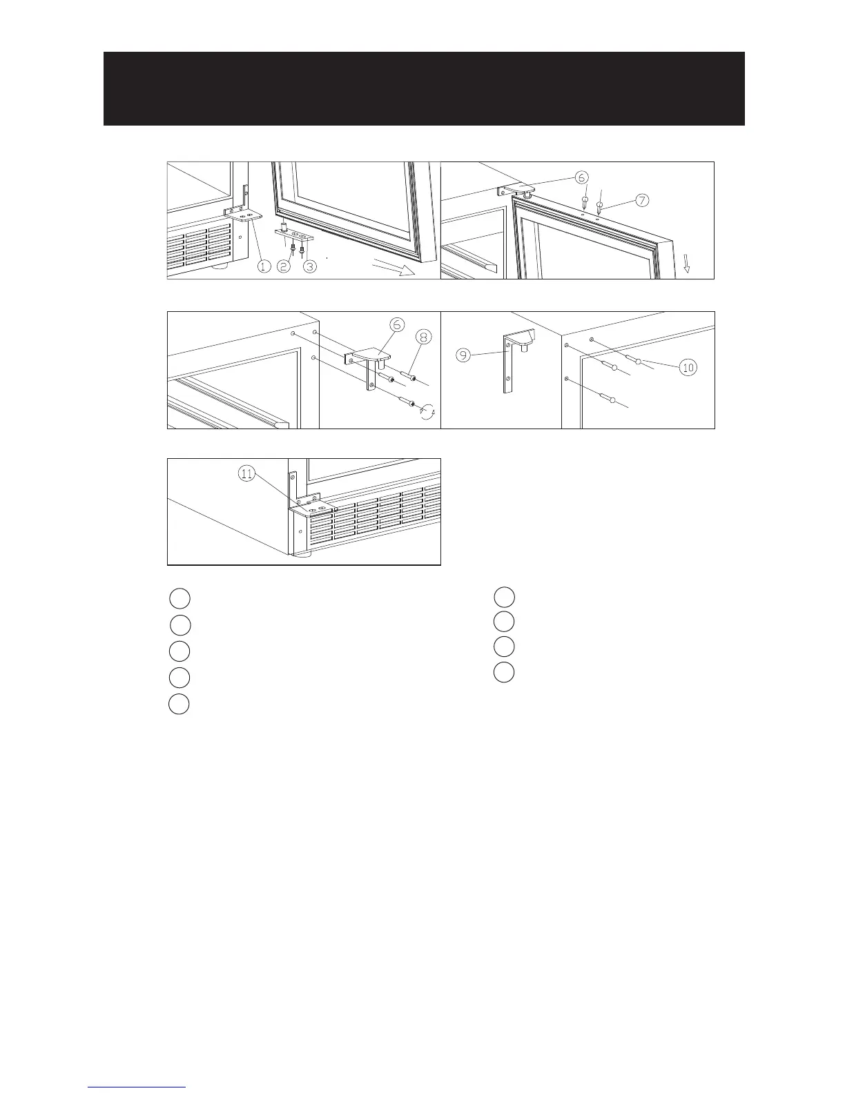5. En suivant la procédure décrite ci-dessus, installez la charnière inférieure gauche supplémentaire (11)