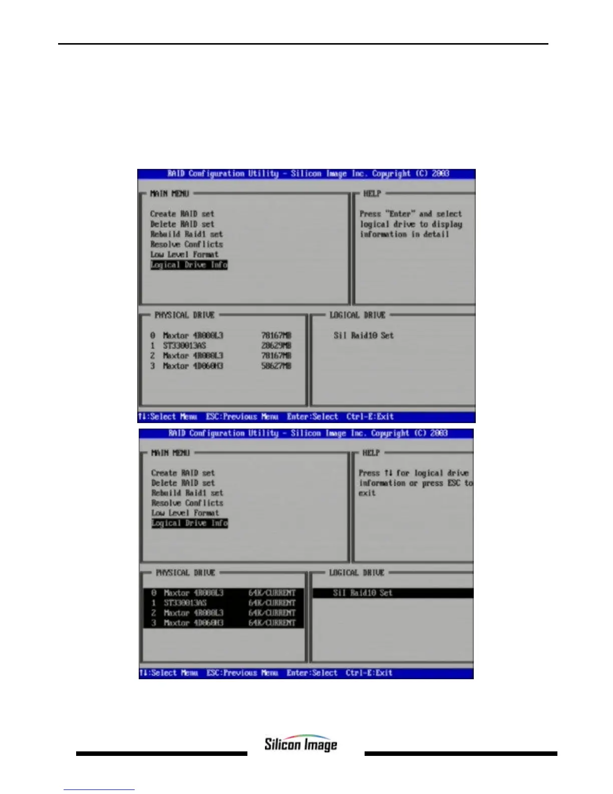 unassigned). It is a display-only function. Use the up and down arrow keys to scroll between the drives in the Logical Drive