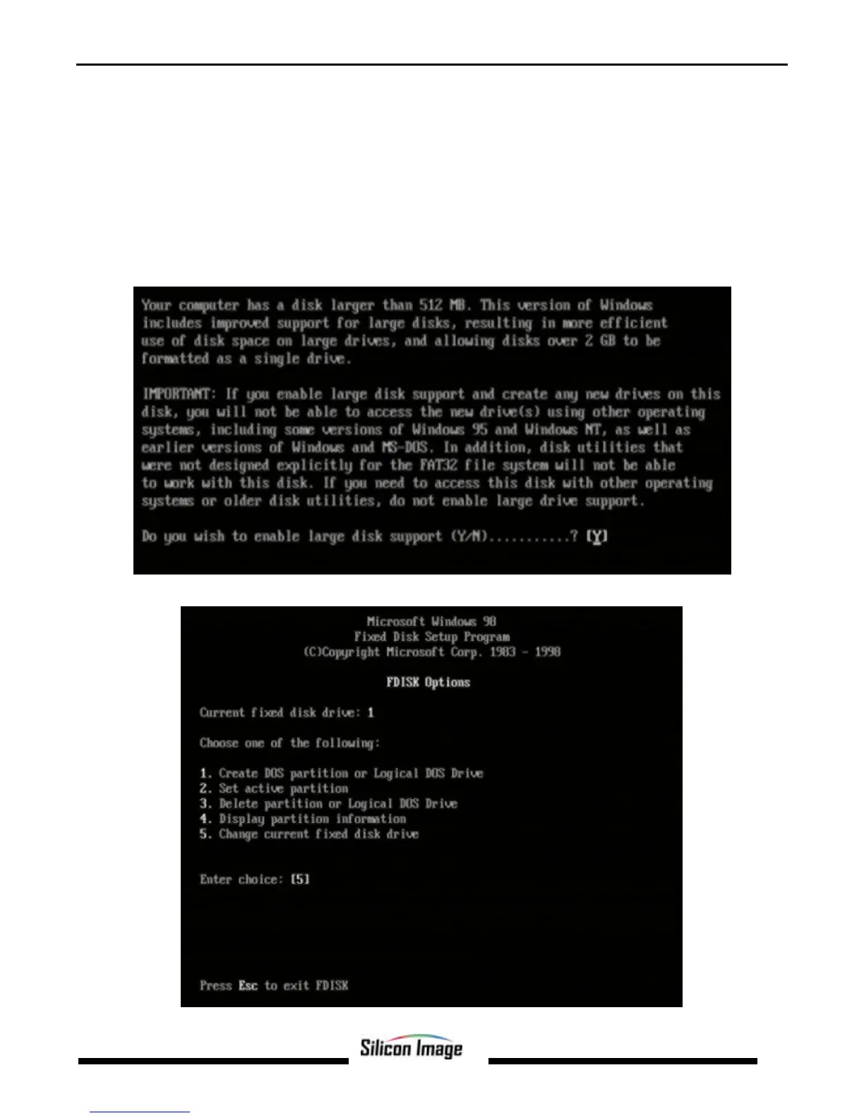 the BIOS RAID utility and booting Windows, the partitions must be created using the FDISK program. To invoke FDISK from