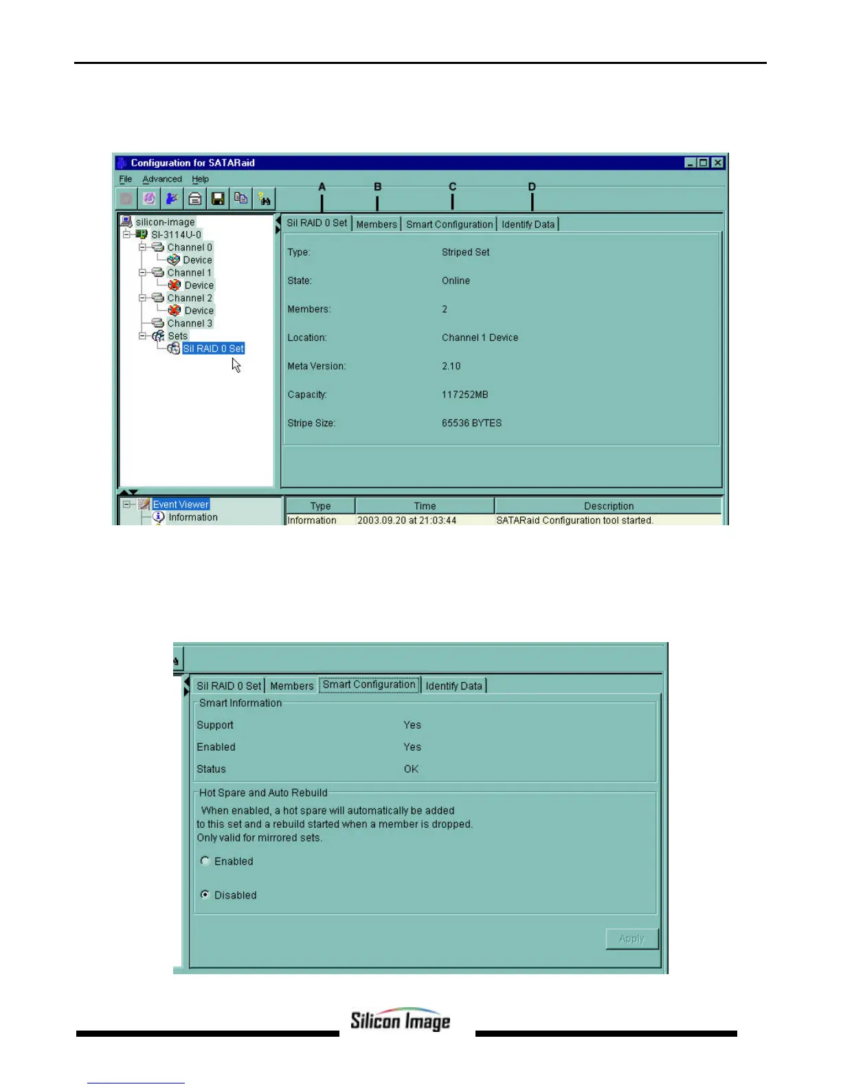 SMART and Configuration information is displayed by selecting the Smart Configuration tab (C). Also in this section is a