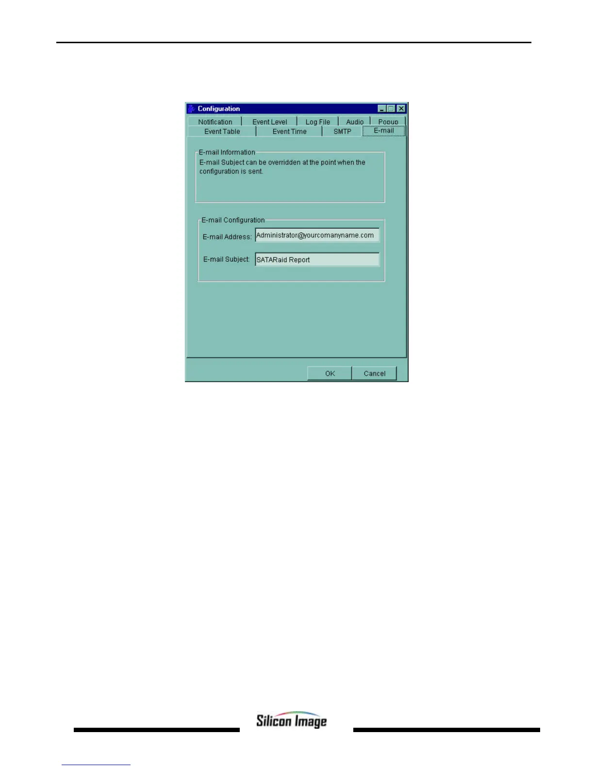administrator for technical support. Select the e-mail tab in the SATARaid Configuration Menu and enter the default e-mail