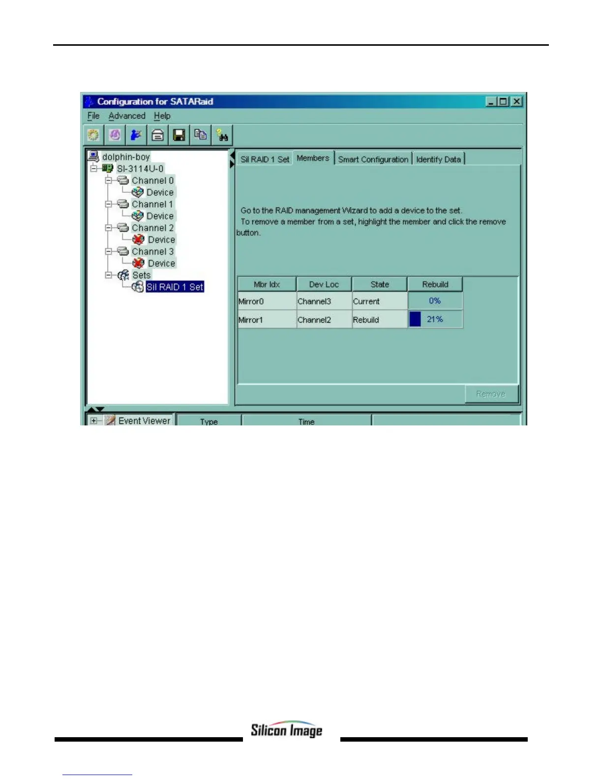 device. Select the Members tab for the RAID Set in the Information window. From here, the progress of the RAID Set