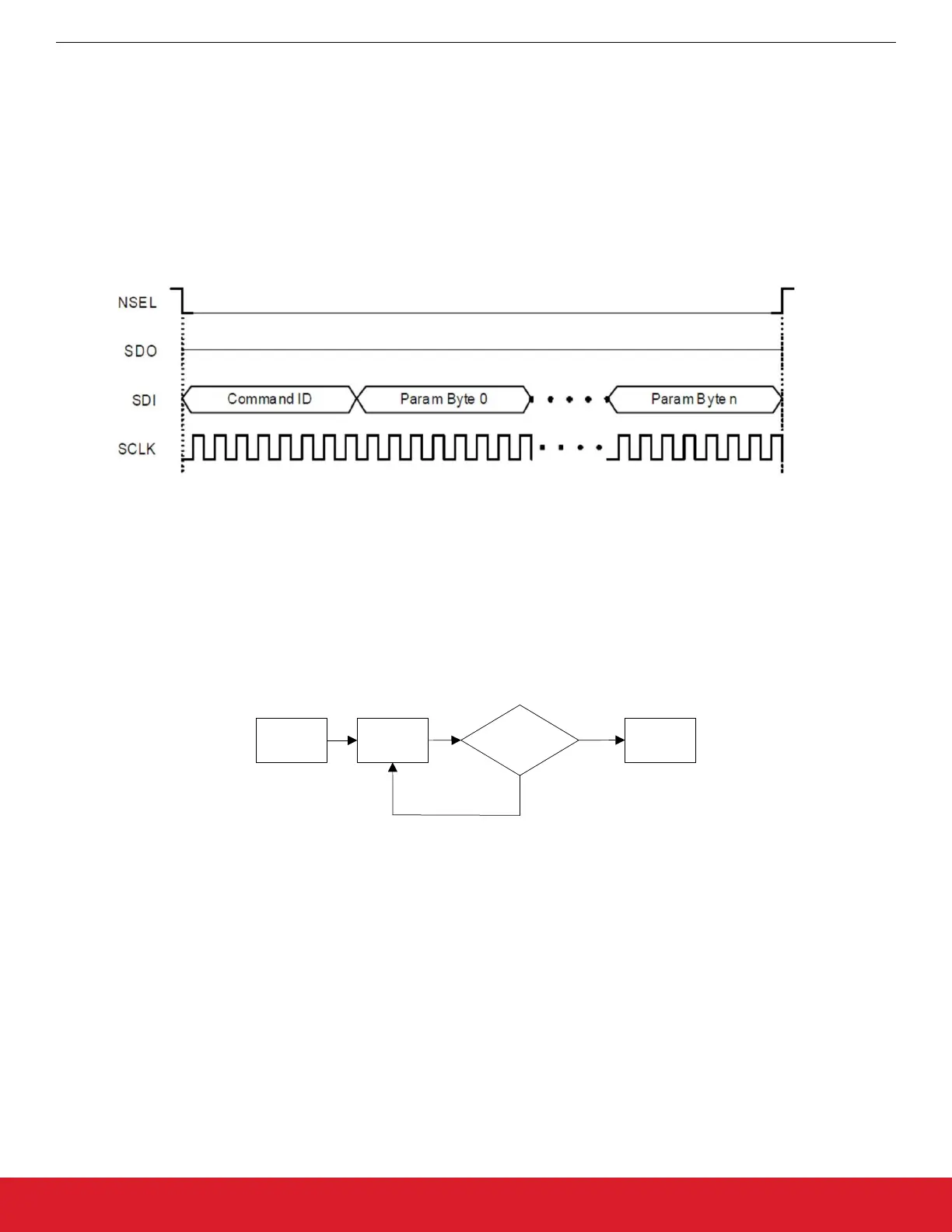 All the commands that are sent to the radio have the same structure. After pulling down the NSEL pin of the radio, the command ID
