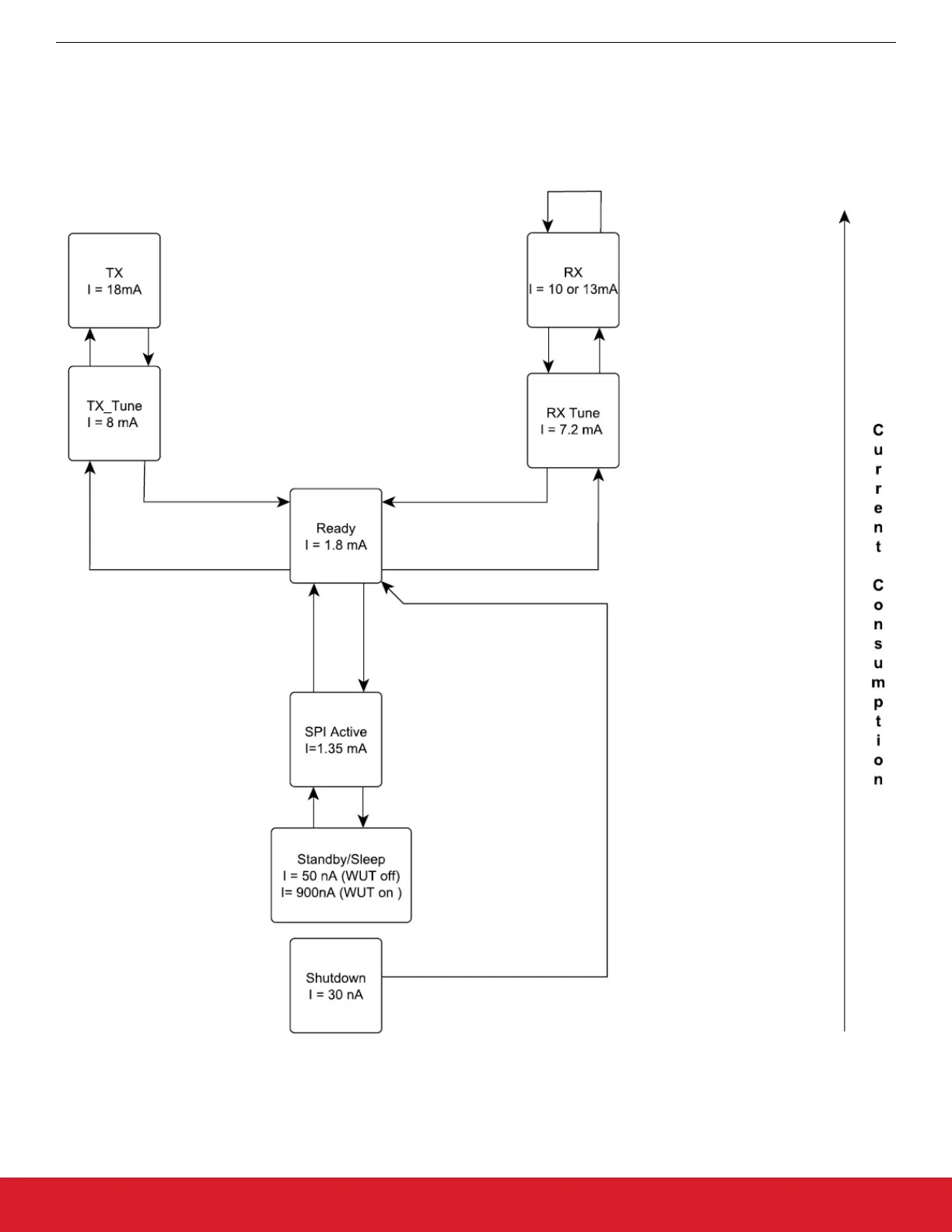 shown in the diagram, any of the lower power states can be returned to automatically after RX or TX.