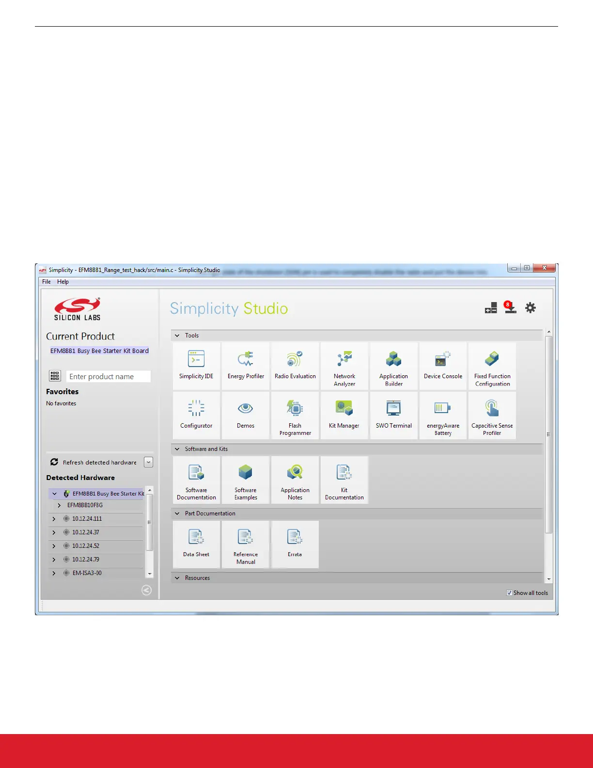 main tool for developing on Silicon Labs' MCUs and running demos with the kit. Be sure that Simplicity Studio is installed and updated,