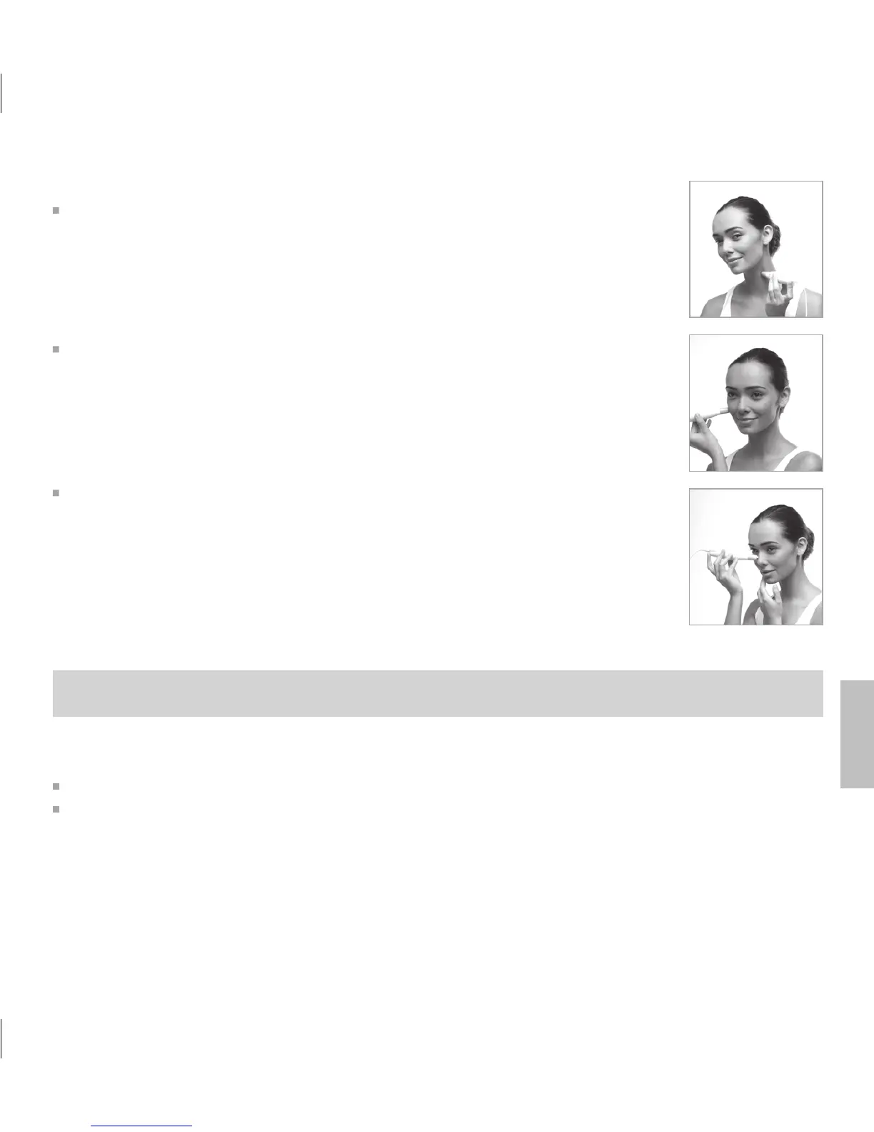 sensibilidad de la piel. Con pasadas suaves, en sentido descendente, trabaje la zona