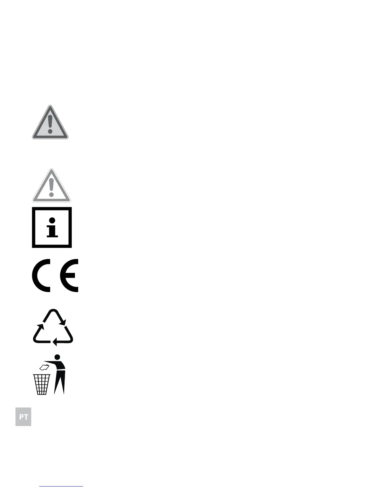 Este símbolo marca informações gerais de reciclagem.