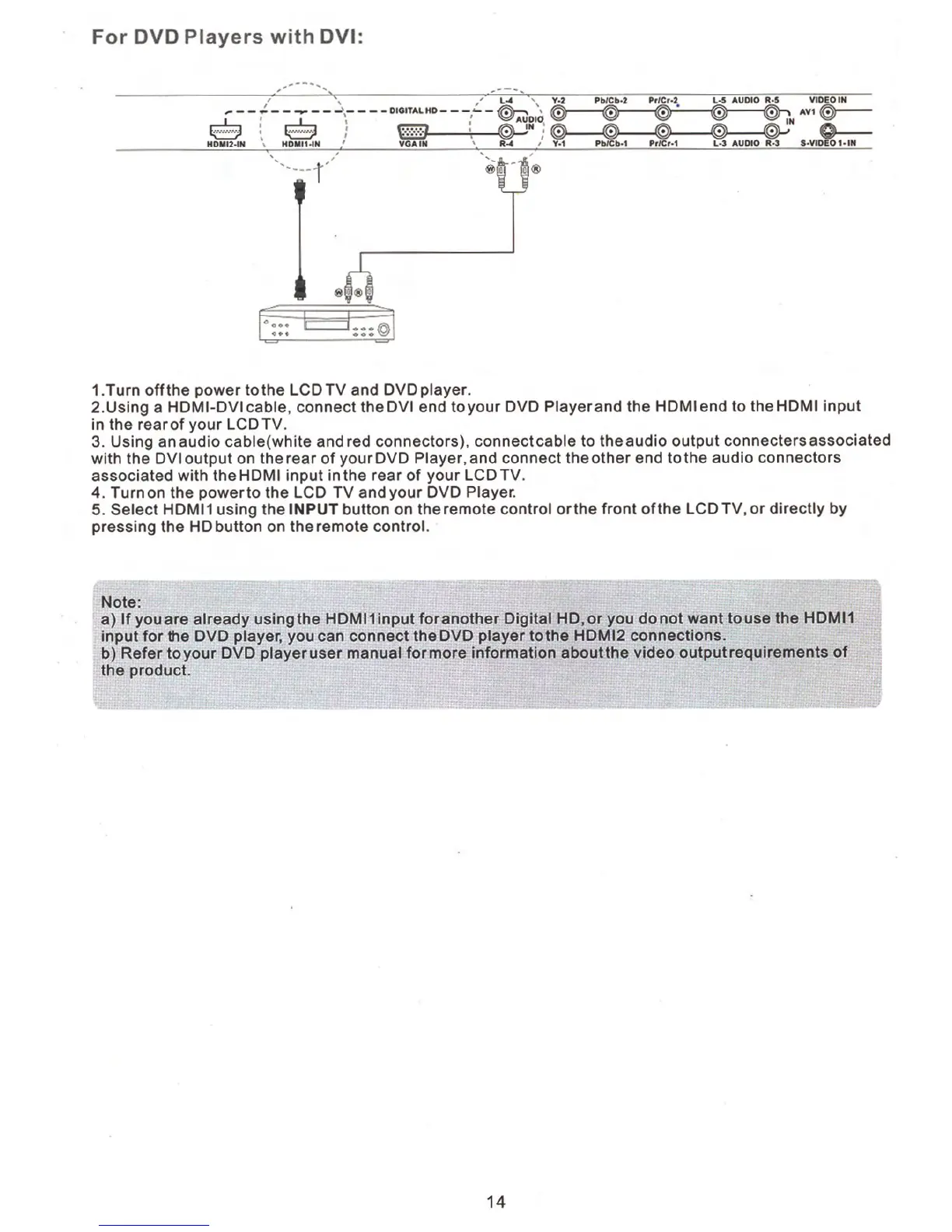 Silo LTV-32PRM - DVD Player Connections; DVD Player DVI to HDMI Connection