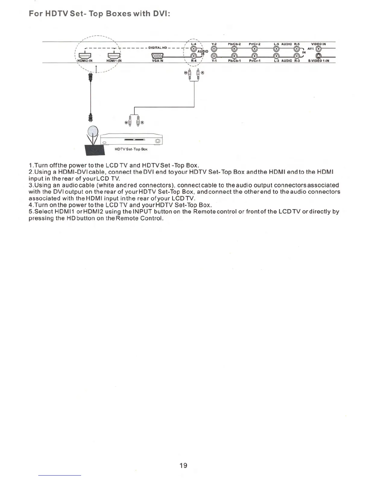 Silo LTV-32PRM - Set-Top Box Connections; Set-Top Box DVI to HDMI Connection