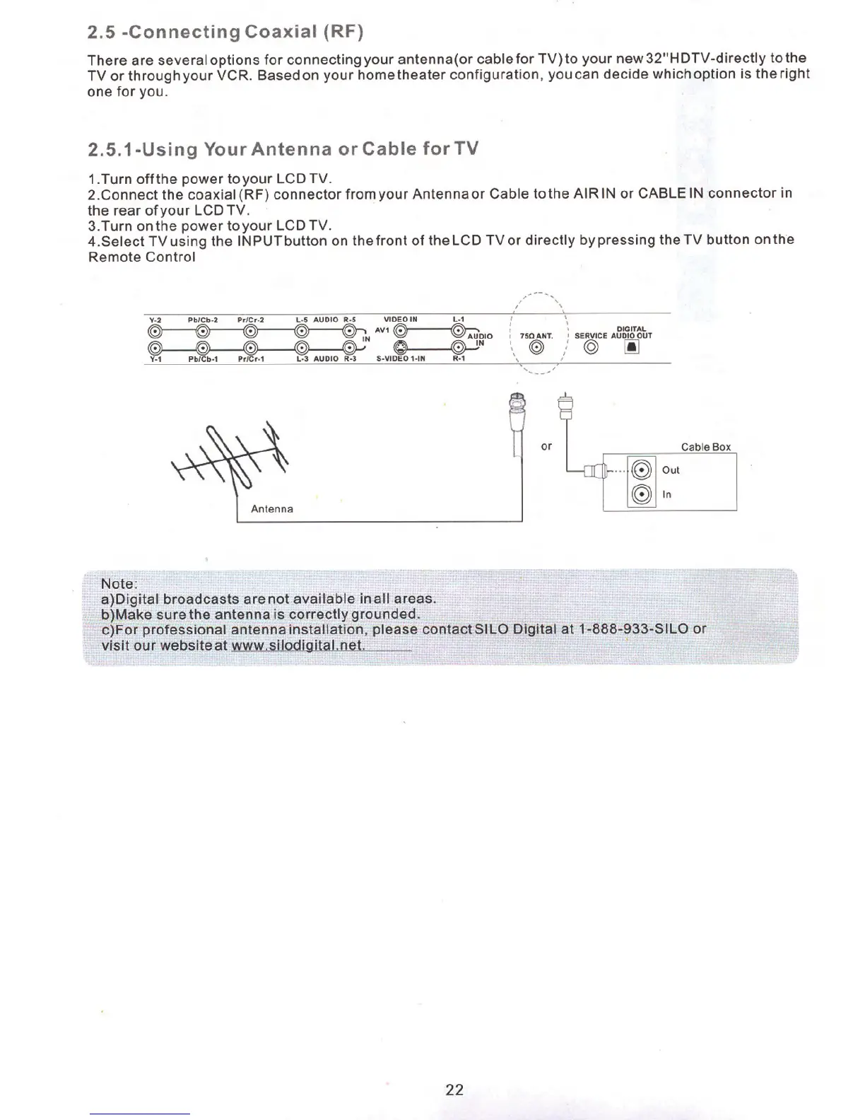 Silo LTV-32PRM - Antenna and Cable Connections; Direct Antenna;Cable to TV Connection
