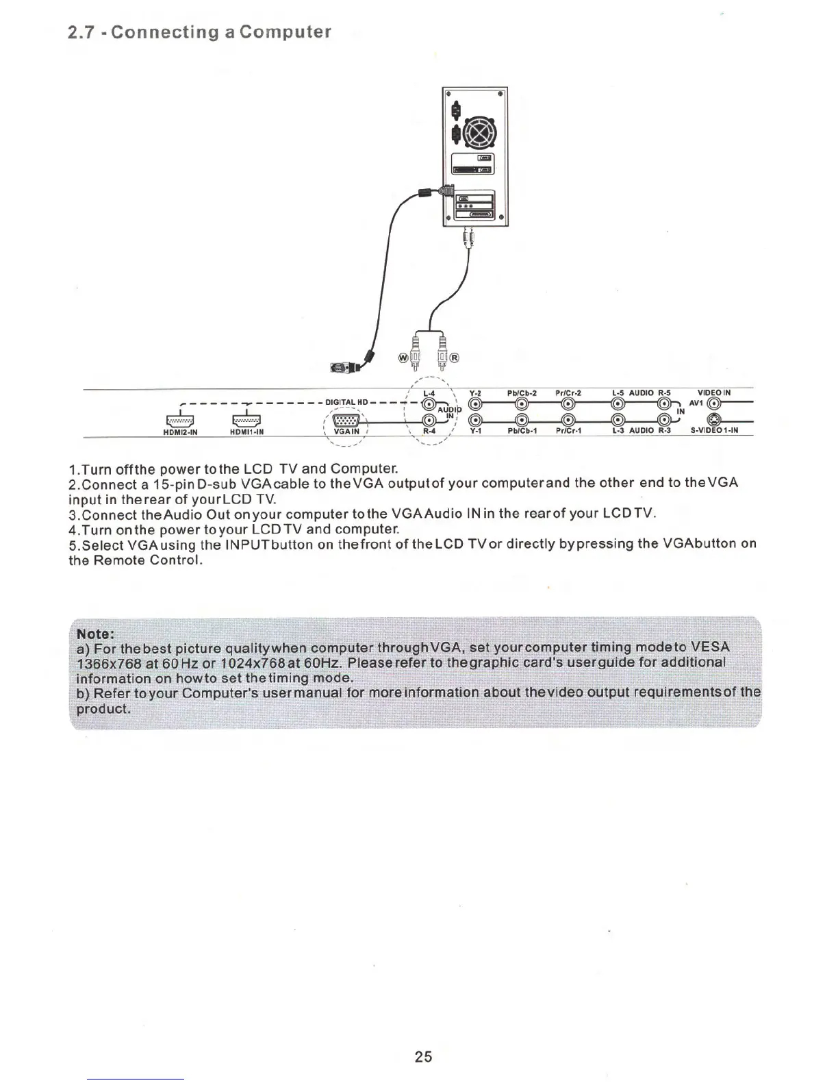 Silo LTV-32PRM - Computer Connection; Computer VGA Connection