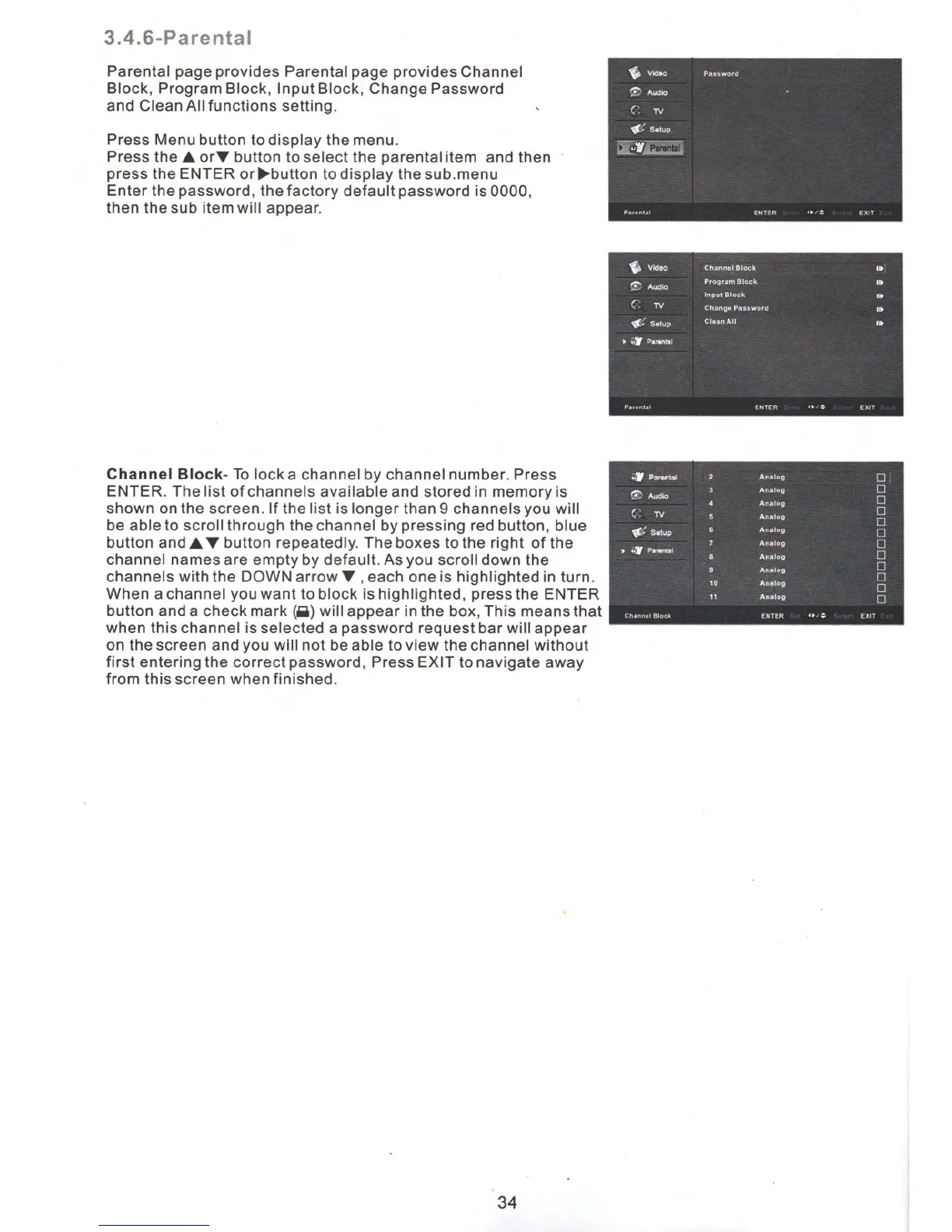 Silo LTV-32PRM - Parental Control Settings; Channel and Program Blocking; Input Source Blocking