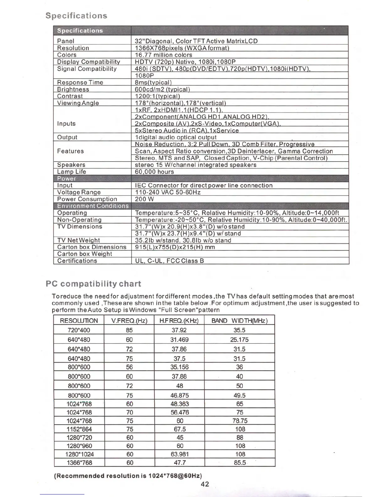 Silo LTV-32PRM - Product Specifications; Key Technical Specifications; Inputs, Outputs, and Features; Power and Environmental Specifications