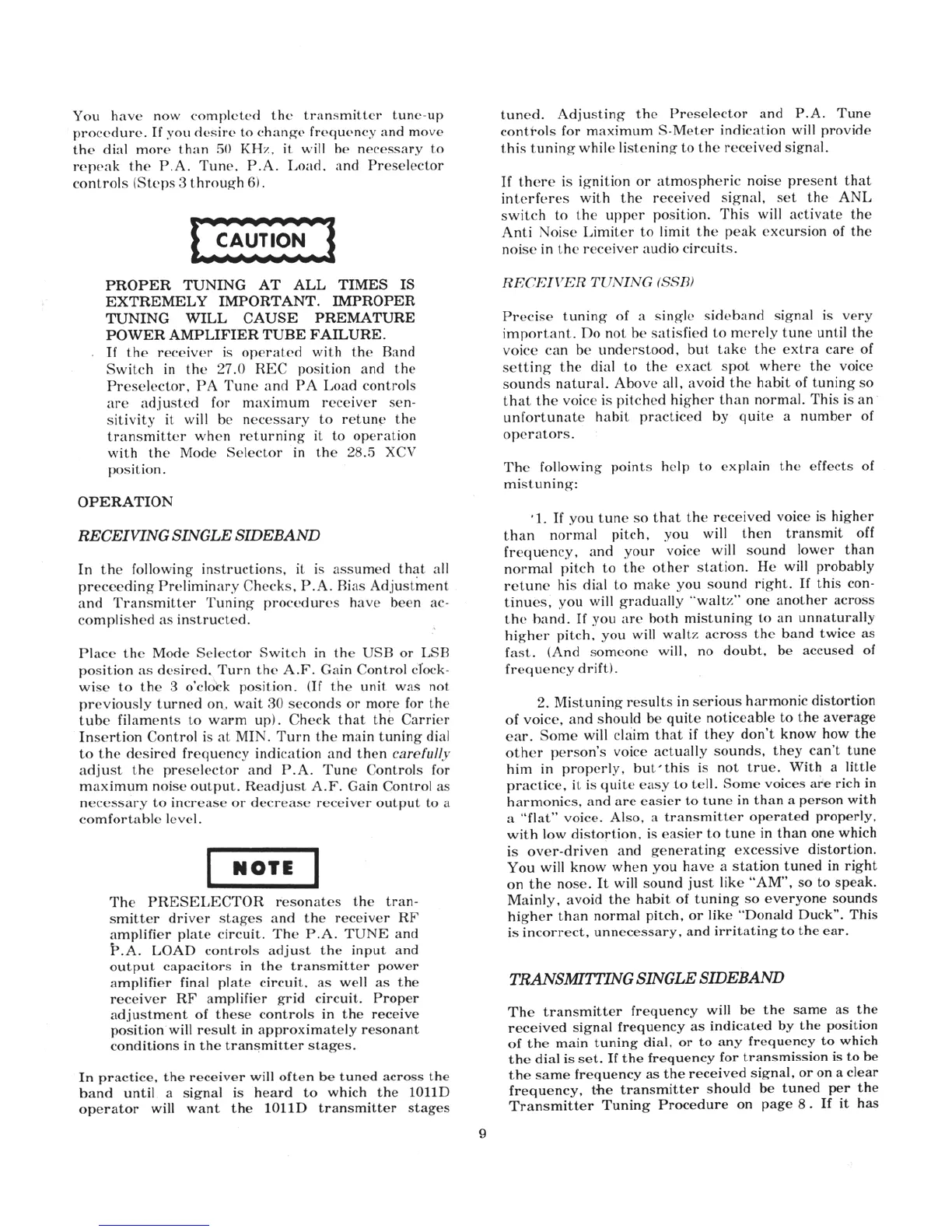 SILTRONIX 1011D - Receiving Single Sideband (SSB); Transmitting Single Sideband (SSB)